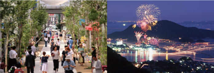 - 島あり、街あり、高原ありと様々なライフスタイルの実現が可能なまち。交通面では空港、新幹線駅、港などが揃い、東京、大阪へ片道2時間以内と大都市に近い田舎暮らしが可能で、島暮らしでも新幹線駅から高速船で約20分と交通の便の良さも自慢の一つです。