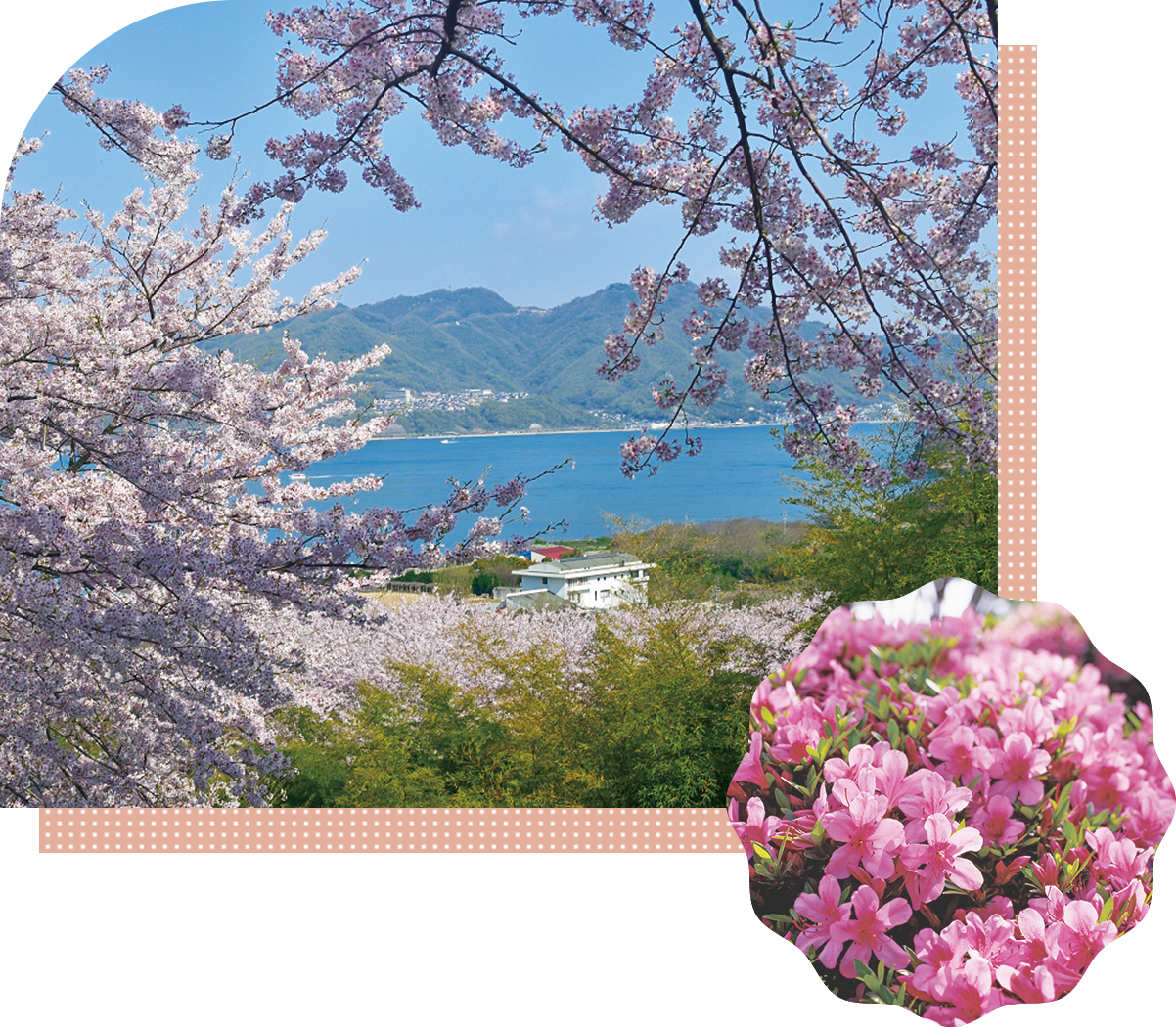 山一面が桜色に染まる佐木島・塔の峰千本桜をはじめ、満汐梅林、三景園のあじさい、棲眞寺公園の蓮など、海から山へと花スポットが点在する。